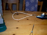 Dieses wird nun fortgeführt bis 1 cm vor Schlaufenende, der Kohlefaserstab bleibt die ganze Zeit in der "Fliege".