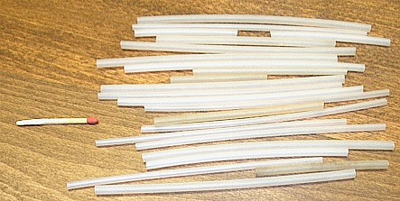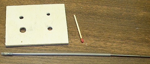 Der Schlauch wird über eine alte Fahrradspeiche gezogen und in ein Stück Holz werden verschieden große Löcher (hier 5, 6, 7, 8 mm)gebohrt.