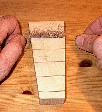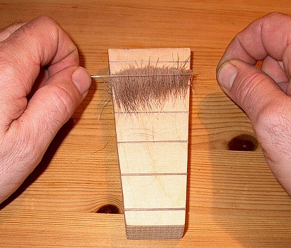 Mit dem Monofil ist es nun auch möglich, Haare zu verarbeiten, wie hier an einer Portion Rehhaar demonstriert wird.