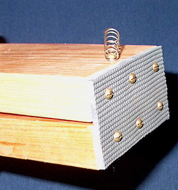 Am Haken Draht festwickeln und zur Feder legen. Material auf dem Draht verteilen, den Draht von der Feder zurück zum Haken legen und dort festwickeln und abknipsen.