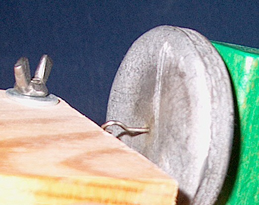 Nun das Schwunggewicht drehen (nun checkt man auch, warum auf einer Seite eine Feder ist, die die Drallverkürzung des gedrehten Drahtes abfängt!)