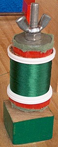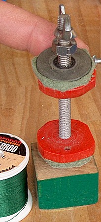 Das Ganze wird mit einer M6-Mutter so weit zusammengepresst, bis die erwünschte Fadenspannung erreicht ist und dann mit der M6-Flügelmutter gekontert.