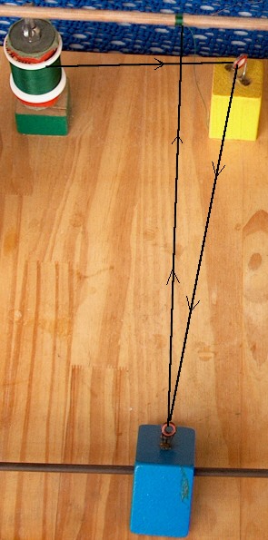 Zur Verdeutlichung hier noch einmal ein Foto, auf dem der Fadenverlauf markiert ist.