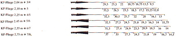 der Ringe könnt ihr der folgenden Tabelle entnehmen, eine Tabelle habe ich aus einem alten Katalog von ASH, die andere ist aus einem dänischen FliFi-Katalog (Korsholm in Skjern).