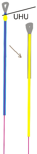 kurz abgeschnitten und mit einem Tropfen UHU Kraft
