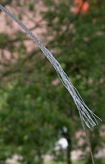 Das austretende Monofil wird nun irgendwo festgeknotet und ca. 3 m durchgezogen. Dieser Vorgang ist der schwierigste und erfordert