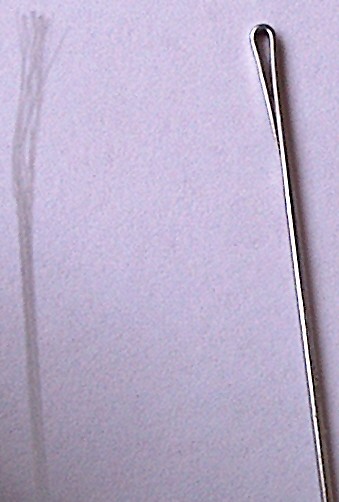 Mit der Ködernadel nimmt man nun das Geflecht inkl. des Monofils auf und führt es an der